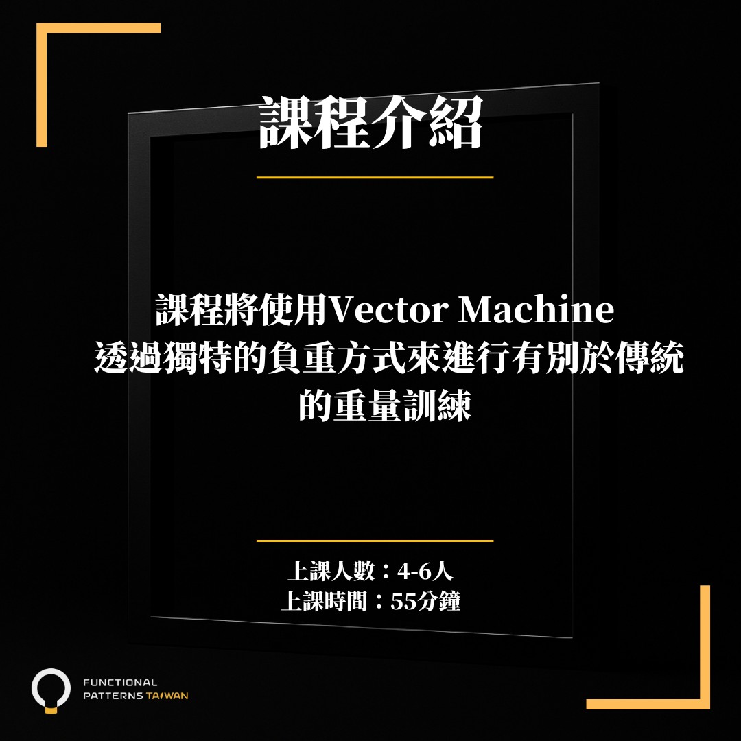 這是一門專為已有運動經驗者設計的功能性訓練課程。課程將以 Vector Trainer 為主要訓練器械,透過其獨特的負荷系統,帶來不同於傳統重量訓練的刺激,幫助你更有效率地強化動作控制與整合。